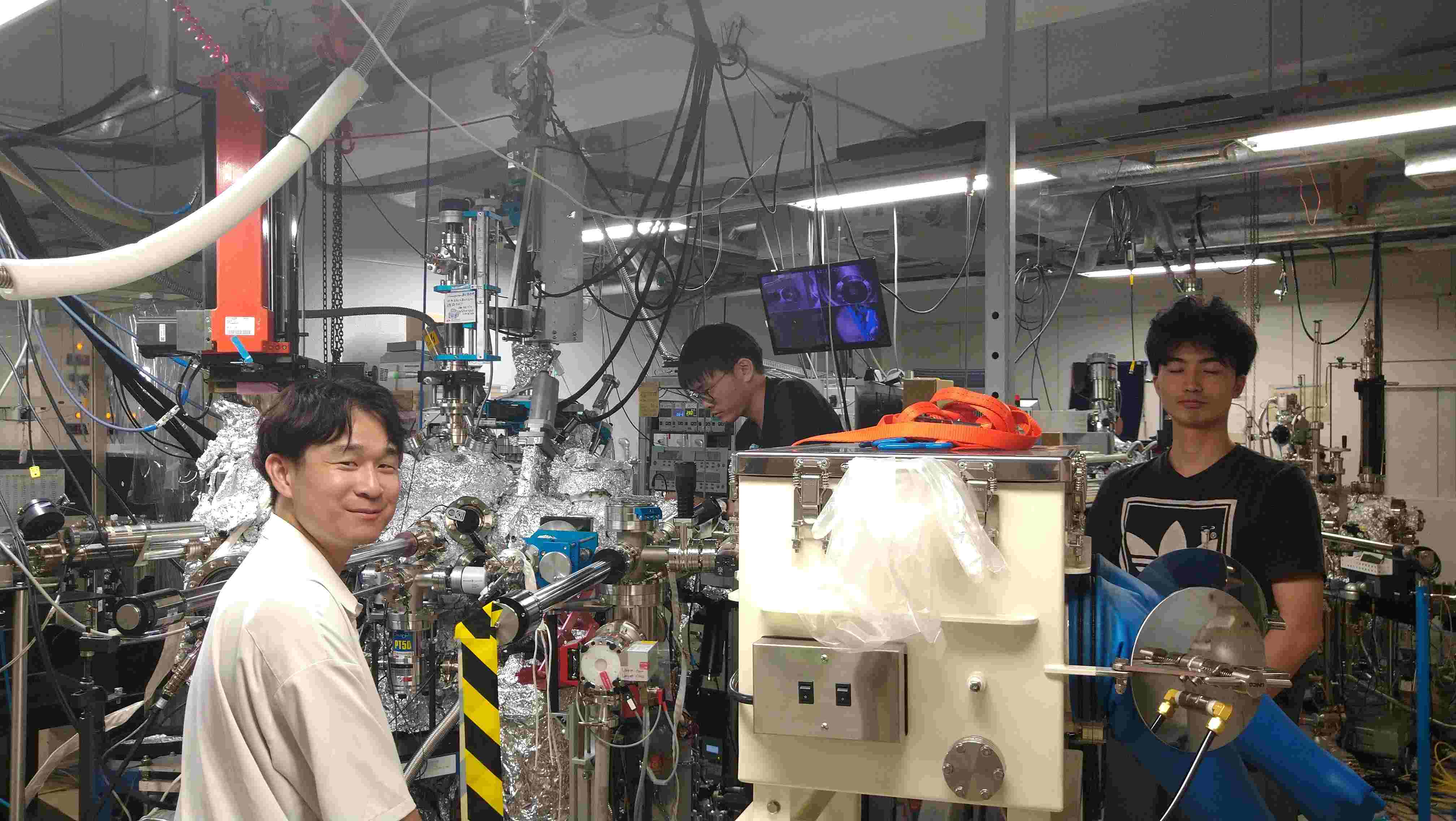 山田先生、柴原君、橋本君、本永君が分子研・解良先生の研究室で光電子分光測定を行いました。福谷先生、下ケ橋様、皆様、ありがとうございました。