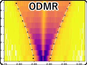 試料にはダイヤモンド内の窒素空孔スピン(スピン角運動量 S=1 三重項 ゼロ磁場分裂)を使いました。